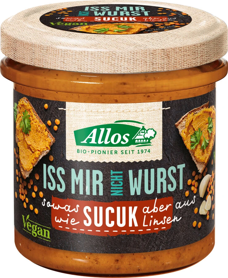 Für alle, die den herzhaften Kick lieben, ohne auf Fleisch zurückzugreifen, ist der Allos Sucuk Aufstrich aus Linsen die perfekte Wahl. Dieser pflanzliche Brotaufstrich überzeugt mit seinem würzigen Geschmack und bietet eine fantastische Alternative. Ob zum Frühstück auf frischem Brot oder als kreative Zutat in deinen Lieblingsrezepten – dieser Aufstrich beweist, dass pflanzliche Ernährung alles andere als langweilig ist. Hol dir den unvergleichlichen Genuss nach Hause und überrasche deinen Gaumen mit etwas Neuem!