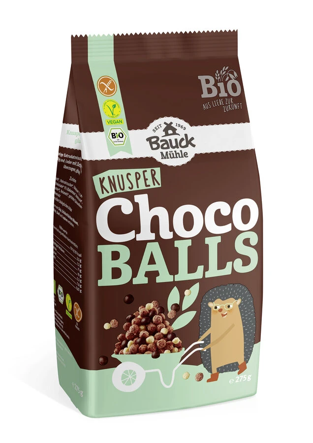 Bauckhof Choco Balls glutenfrei, 275 g Packung – Knusprige Bälle aus Mais, Reis und Quinoa, zum Teil kakaohaltig und mit Zartbitter Schokolade überzogen.