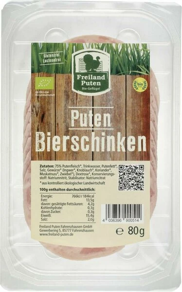 Bio Freiland Putenbierschinken Geschnitten 80g