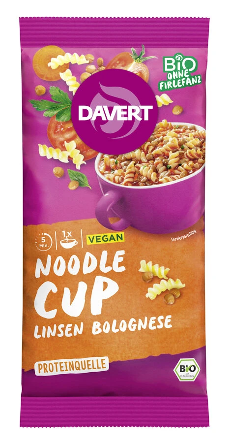 Davert Noodle-Cup Linsen Bolognese, 65 G Packung