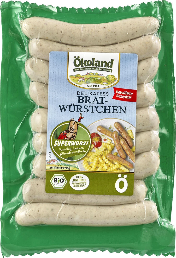 Ökoland Delikatess Bratwürstchen „Superwurst“ , 180 G Packung