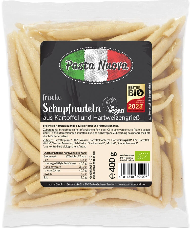 Entdecke die frischen Schupfnudeln von Pasta Nuova, die deinen Teller in ein kulinarisches Highlight verwandeln. Diese veganen Köstlichkeiten sind schnell zubereitet und bieten unendliche Variationsmöglichkeiten, ob herzhaft mit Sauerkraut oder süß mit Apfelmus. Ideal für alle, die eine schnelle und geschmackvolle Mahlzeit schätzen. Mit ihrer Vielseitigkeit und dem authentischen Geschmack sind sie ein Muss für jede Küche.
