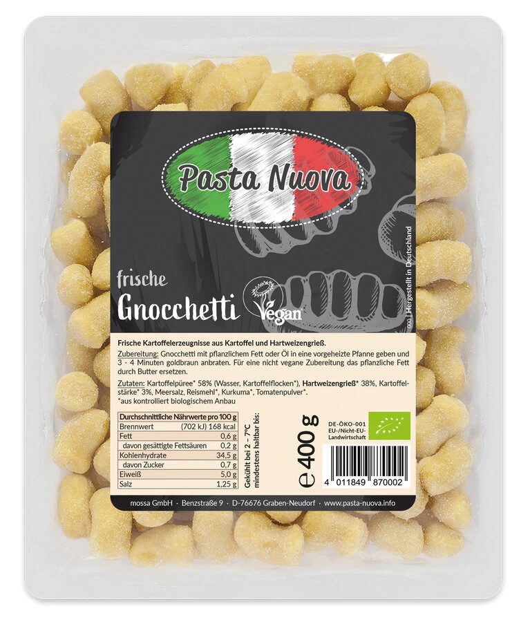 Erlebe den Zauber der italienischen Küche neu mit den frischen, veganen Gnocchetti von Pasta Nuova. Perfekt für die schnelle, pfannenfertige Zubereitung, bieten sie eine hervorragende Grundlage für vielfältige Gerichte. Kombiniere sie nach Lust und Laune mit deinem Lieblingspesto oder einer aromatischen Soße. Diese nach traditioneller Rezeptur hergestellten Gnocchetti sind ein Garant für ein authentisches Geschmackserlebnis, das dich und deine Liebsten begeistern wird.