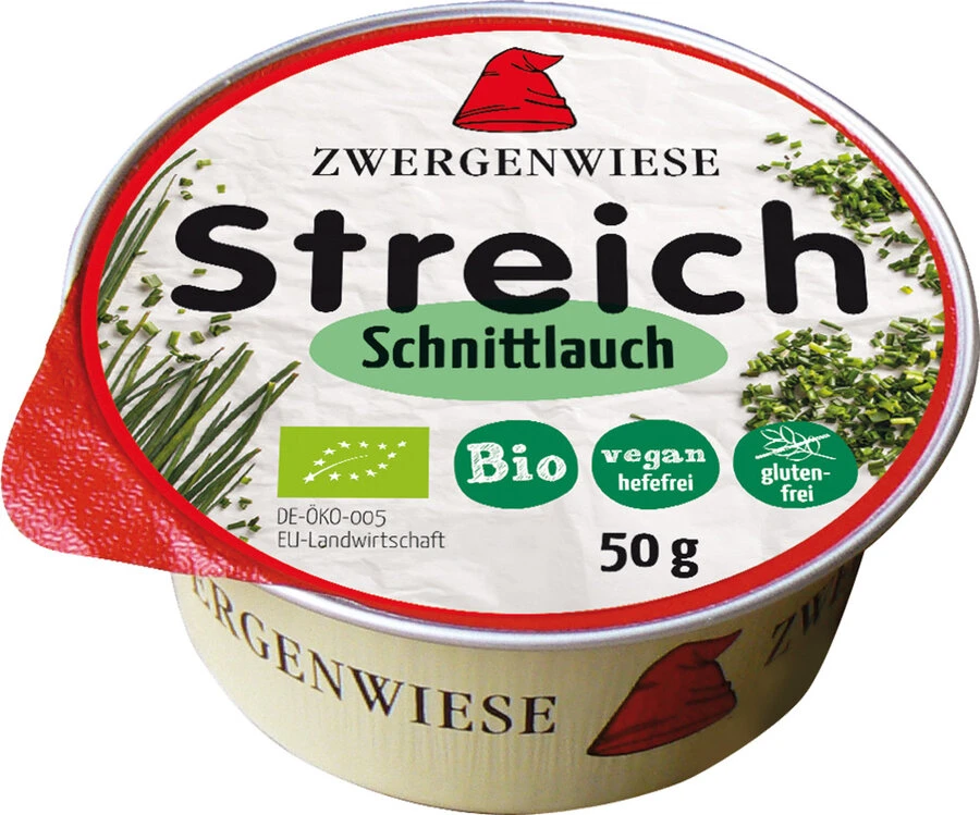 Für alle, die ihren Gaumen mit etwas Besonderem verwöhnen möchten: Der Zwergenwiese Kleiner Streich Schnittlauch ist ein veganer Bio-Brotaufstrich, der aus Sonnenblumenkernen und frischem Schnittlauch besteht. Glutenfrei und vielseitig einsetzbar, eignet er sich hervorragend für kreative Sandwiches, als Basis für Dips und Dressings oder zum Verfeinern deiner Lieblingsgerichte. Ein echter Allrounder in der Küche, der Geschmack und Qualität in jedem Bissen verspricht.