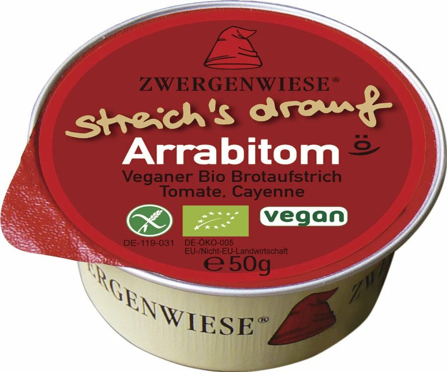 Verwöhne deinen Gaumen mit Zwergenwiese Kleiner streichs drauf Arrabitom, dem veganen Bio-Brotaufstrich, der mit seiner cremigen Textur und der perfekten Mischung aus Tomate und Cayenne jeden Bissen zu einem Erlebnis macht. Ob als Basis für fantasievolle Sandwiches, als raffinierter Dip oder zum Verfeinern deiner Gerichte – dieser Aufstrich bringt Vielfalt und Geschmack in deine Küche. Freue dich auf ein Produkt, das Qualität und Genuss auf einzigartige Weise vereint.
